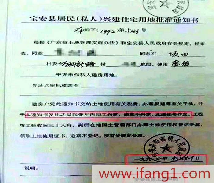 《寶安縣居民(私人)興建住宅用地批準通知書》目前市面上常說的是“兩